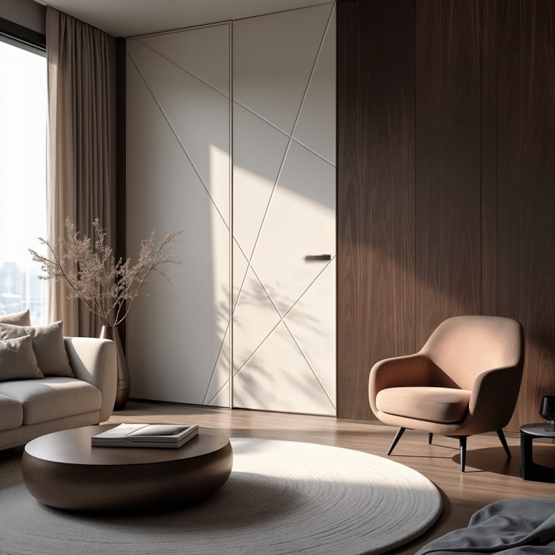 INATEP permite que la hoja quede completamente integrada en el plano de la pared, sin tapetas ni elementos visibles, logrando una continuidad total.