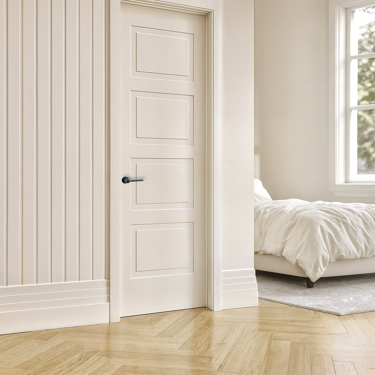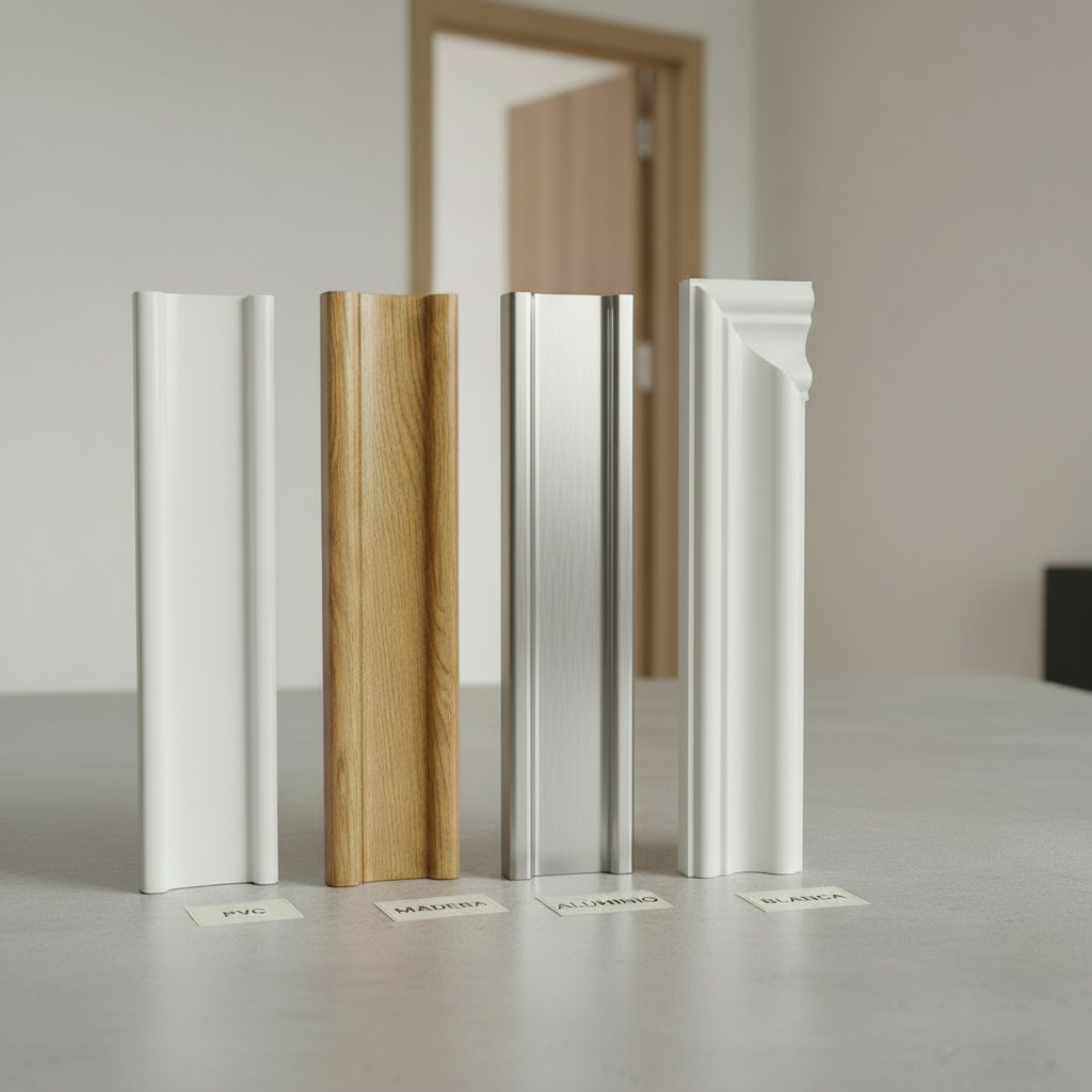 Aporta estabilidad, superficie uniforme y un acabado continuo. Su estética, tanto en lacados como en laminados efecto madera, permite una integración perfecta con la puerta y un resultado visual muy cuidado. En acabados claros, el tapajuntas puerta blanco en DM es una de las opciones más limpias, duraderas y visualmente equilibradas.