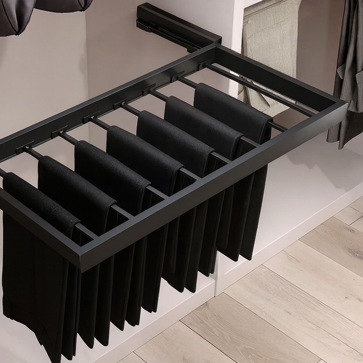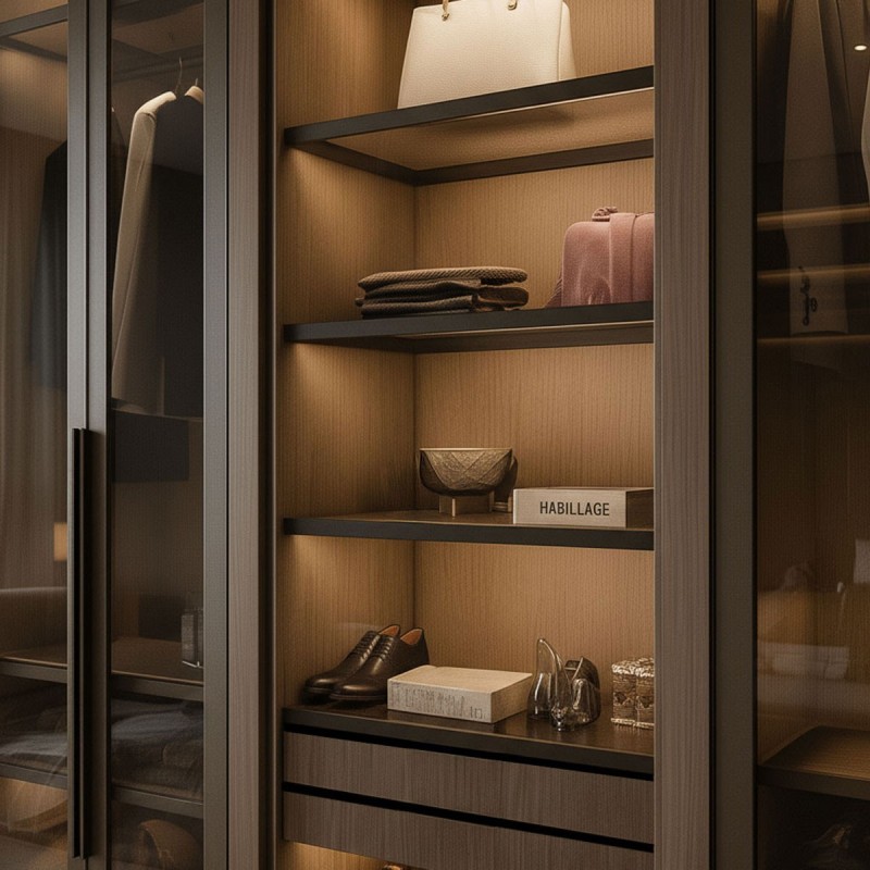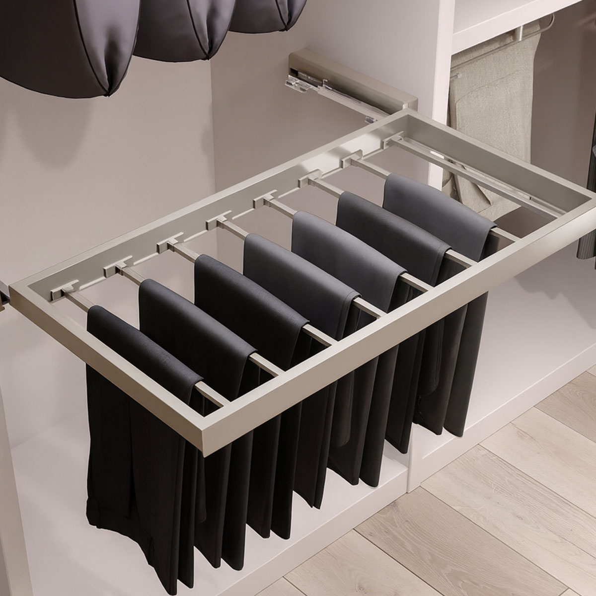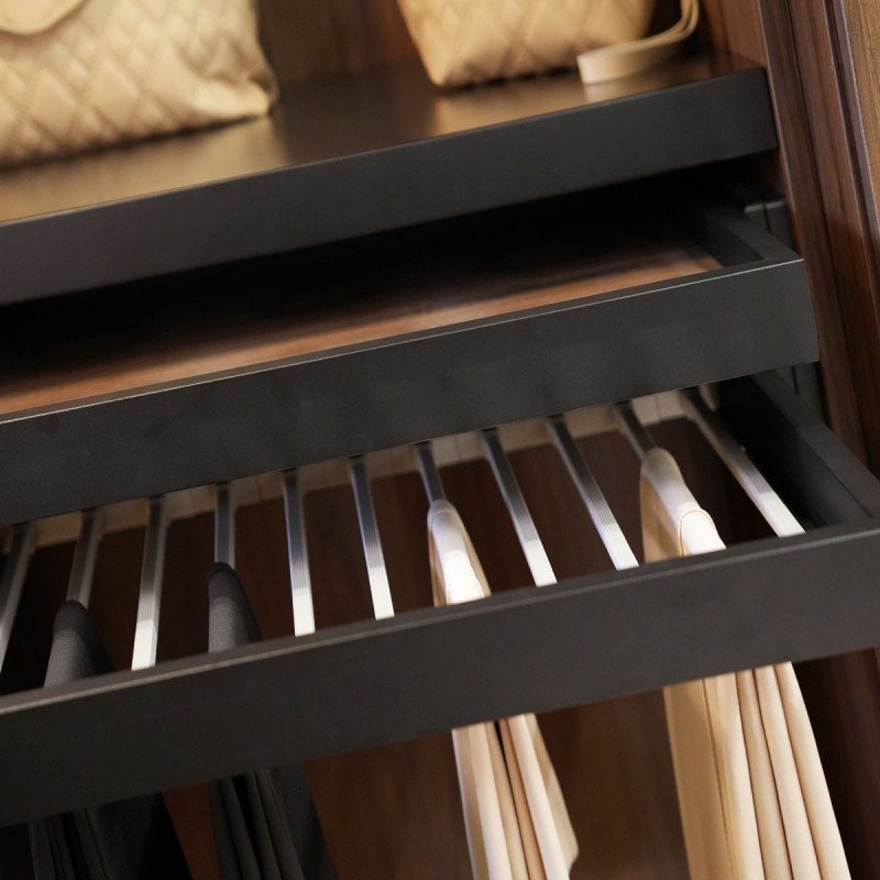 Módulos de interior de armario fabricados a medida, diseñados para ofrecer un montaje sencillo y una máxima durabilidad.
