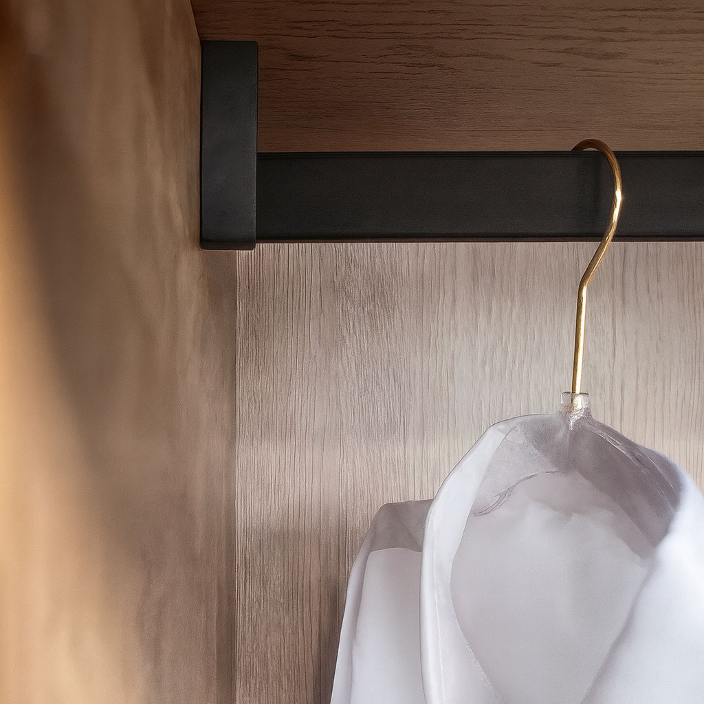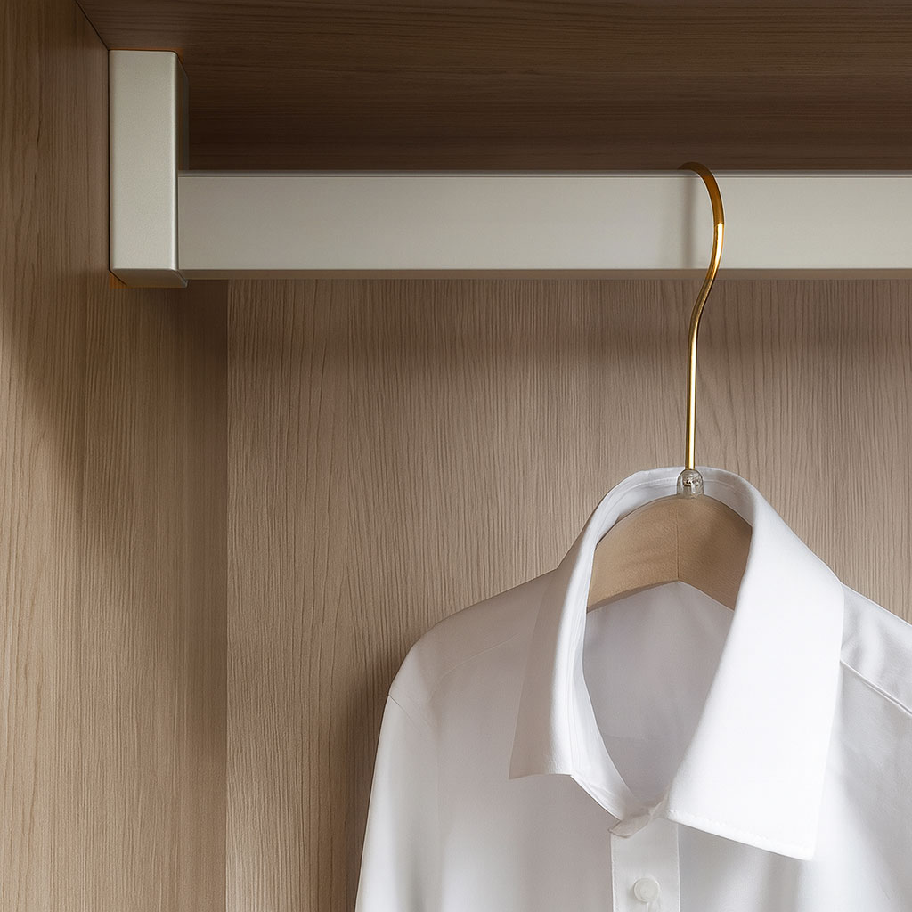 Aprovecha al máximo cada centímetro de tu armario con un interior funcional y ordenado, diseñado para mantener todo a la vista y siempre en su sitio.