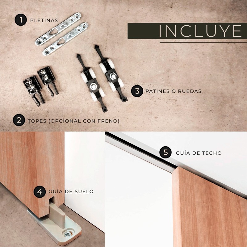 Herrajes Opción guía de techo + pletinas, topes y patines