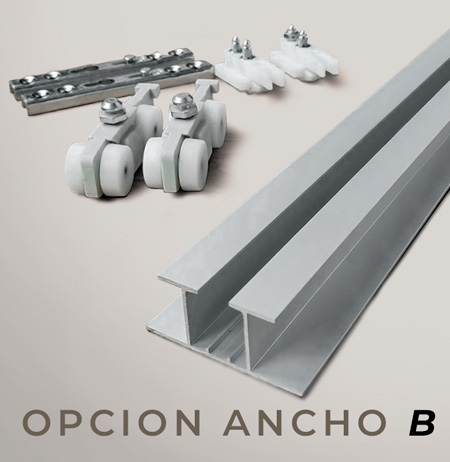 Herrajes Opción guía de techo + pletinas, topes y patines