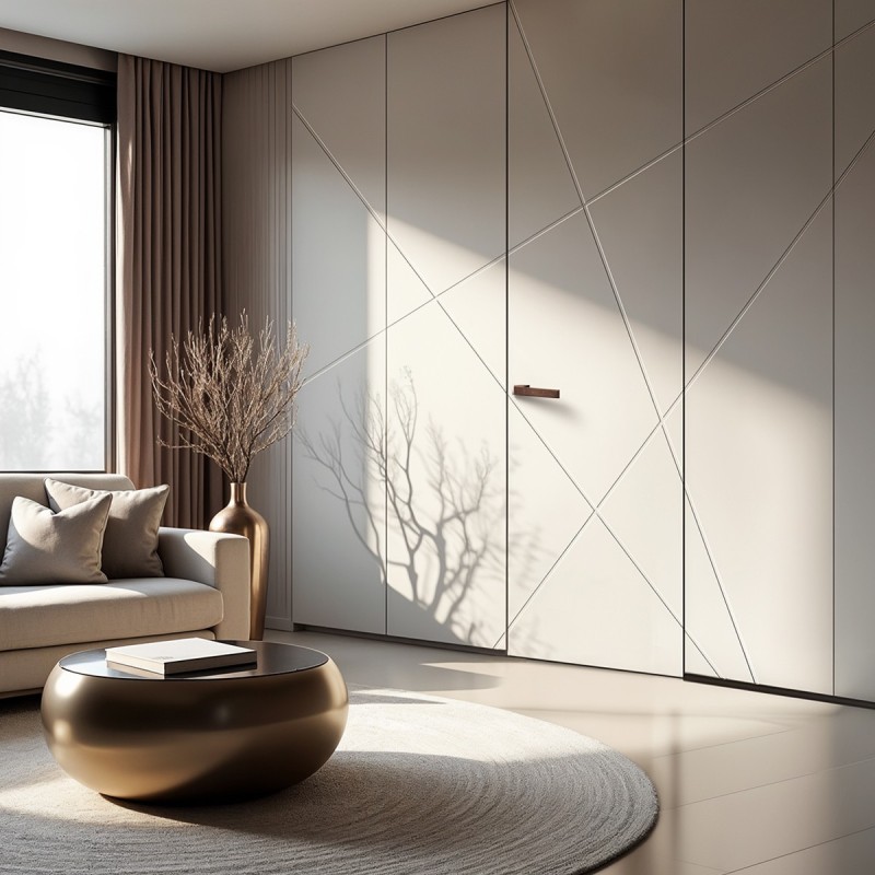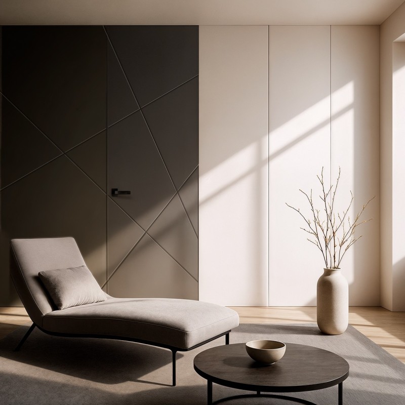 • Paredes interminables, continuidad entre ellas, ya que son puertas que se suelen instalar enrasadas, pasan desapercibidas, por lo que se conocen habitualmente como puertas invisibles u ocultas. Pueden colocarse bien enrasadas a pared sin tapetas o jambas, o poner tapetas y enrasarlas a las mismas.