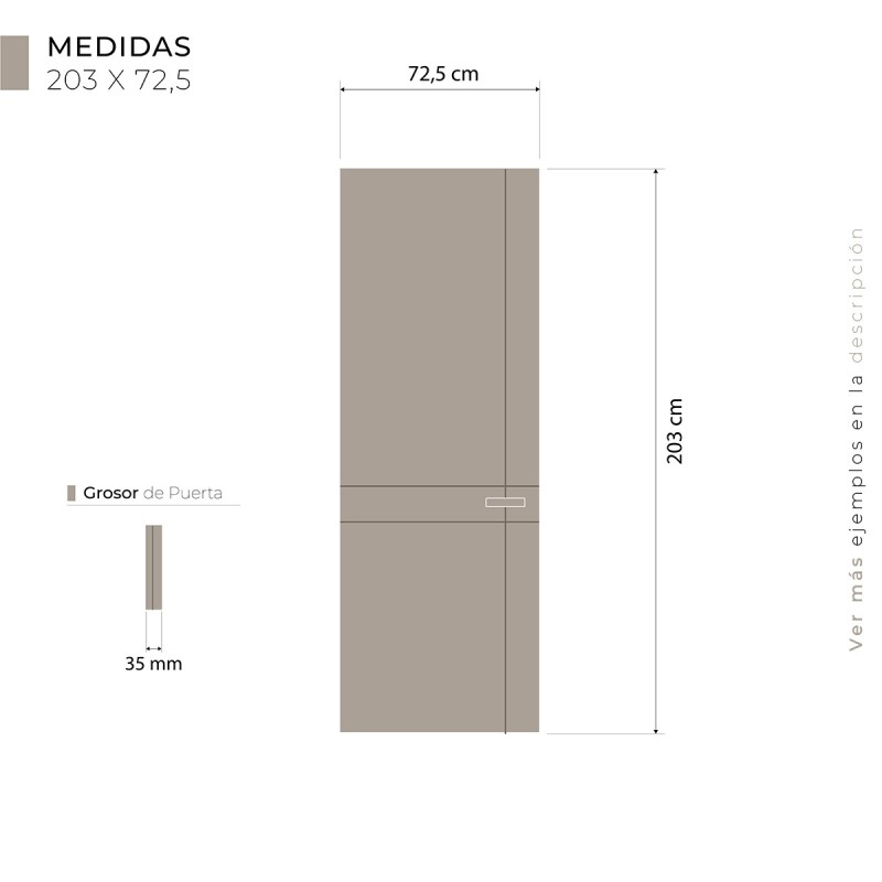• Hoja en Kit para caset metálico: incluye, además de la hoja, los herrajes (tiradores y dedal), los felpudos y las tapetas, rectas de 7 cm y de madera maciza también. . Es necesario tener un casoneto metálico, que puedes obtener aquí, para poder instalarlo dentro de la pared.