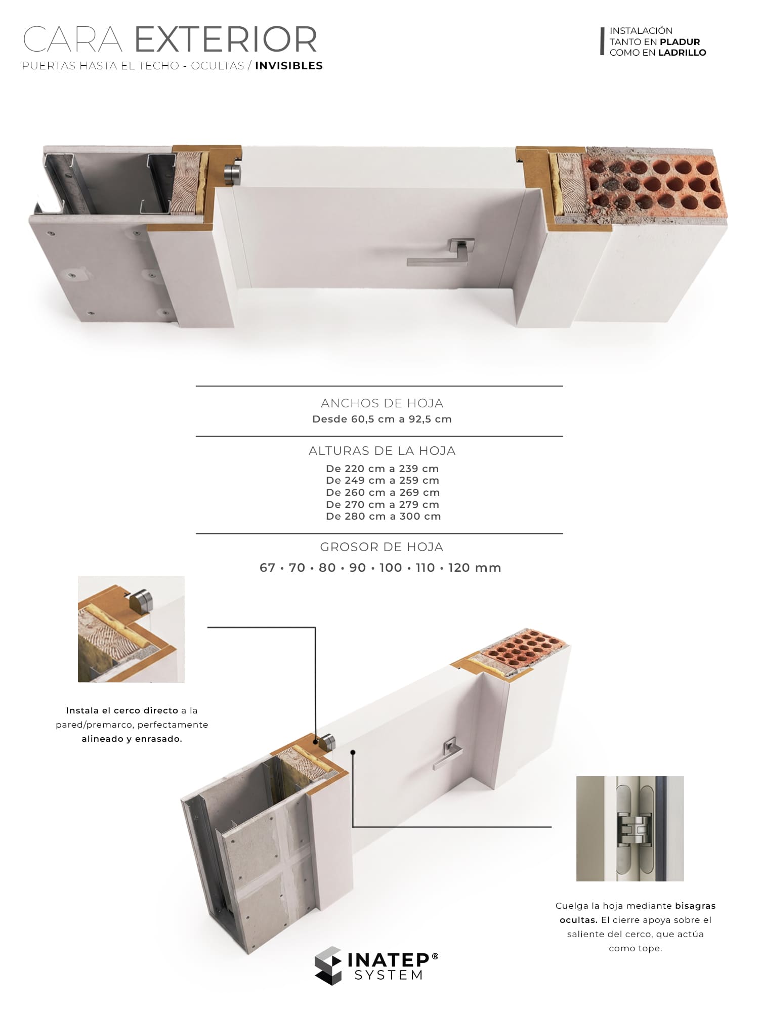 Las puertas de suelo a techo enrasadas a ambas caras, van al mismo nivel que la pared en ambos lados, tanto en la cara exterior como en la cara interior.
