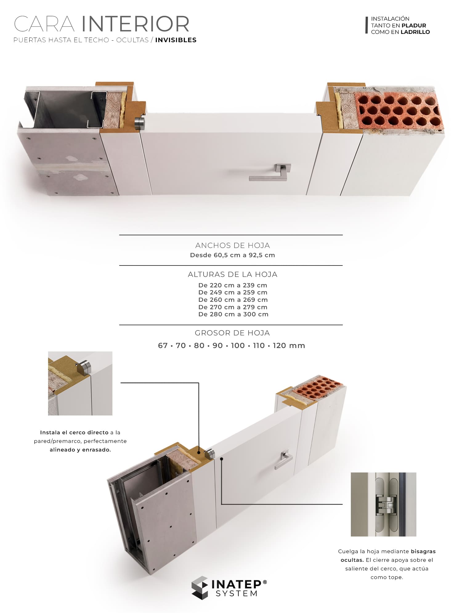 Puerta de suelo a techo oculta, a ras de la pared (Sistema Cerco de madera INATEP patentado)