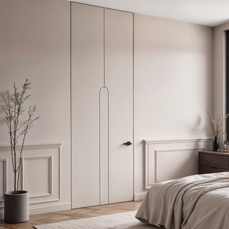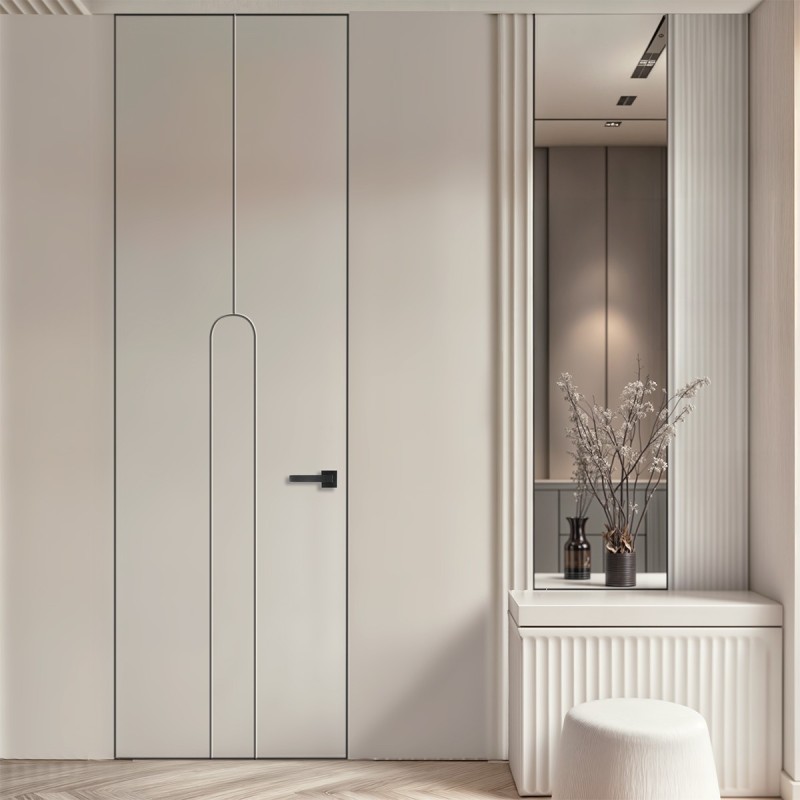 Son puertas hasta el techo, que no tienen tapetas, van enrasadas directamente a la pared, a su mismo nivel, lo que hace que parezcan puertas invisibles u ocultas, creando una continuidad y armonía estética en las paredes de tu hogar.