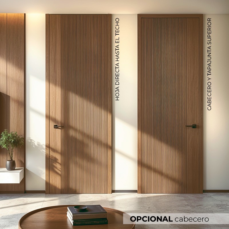 Son puertas hasta el techo, que no tienen tapetas, van enrasadas directamente a la pared, a su mismo nivel, lo que hace que parezcan puertas invisibles u ocultas, creando una continuidad y armonía estética en las paredes de tu hogar.