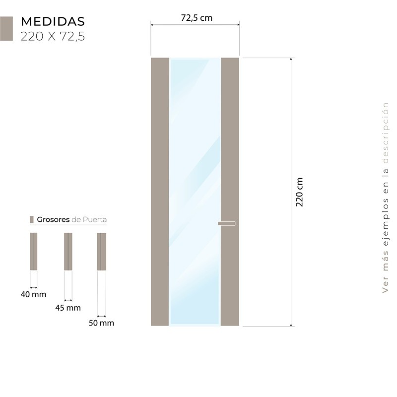 IMPORTANTE: Las puertas más altas de 260cm. serán del grosor 50mm. (presta atención al elegirlo abajo)