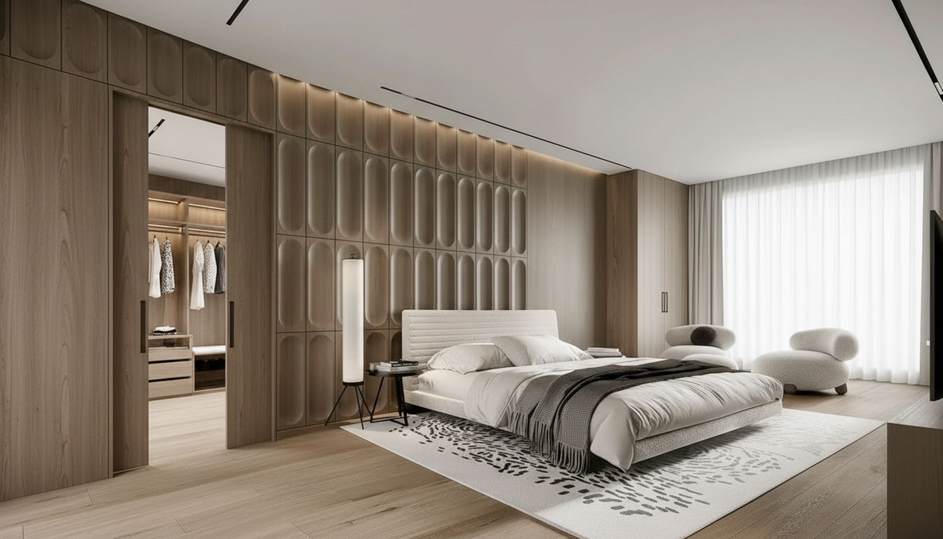 Trabajamos con múltiples opciones de revestimiento en madera y combinaciones posibles: panelados, listones, superficies lisas, juegos de ritmo, alturas, acabados y encuentros con puertas, suelos o iluminación.